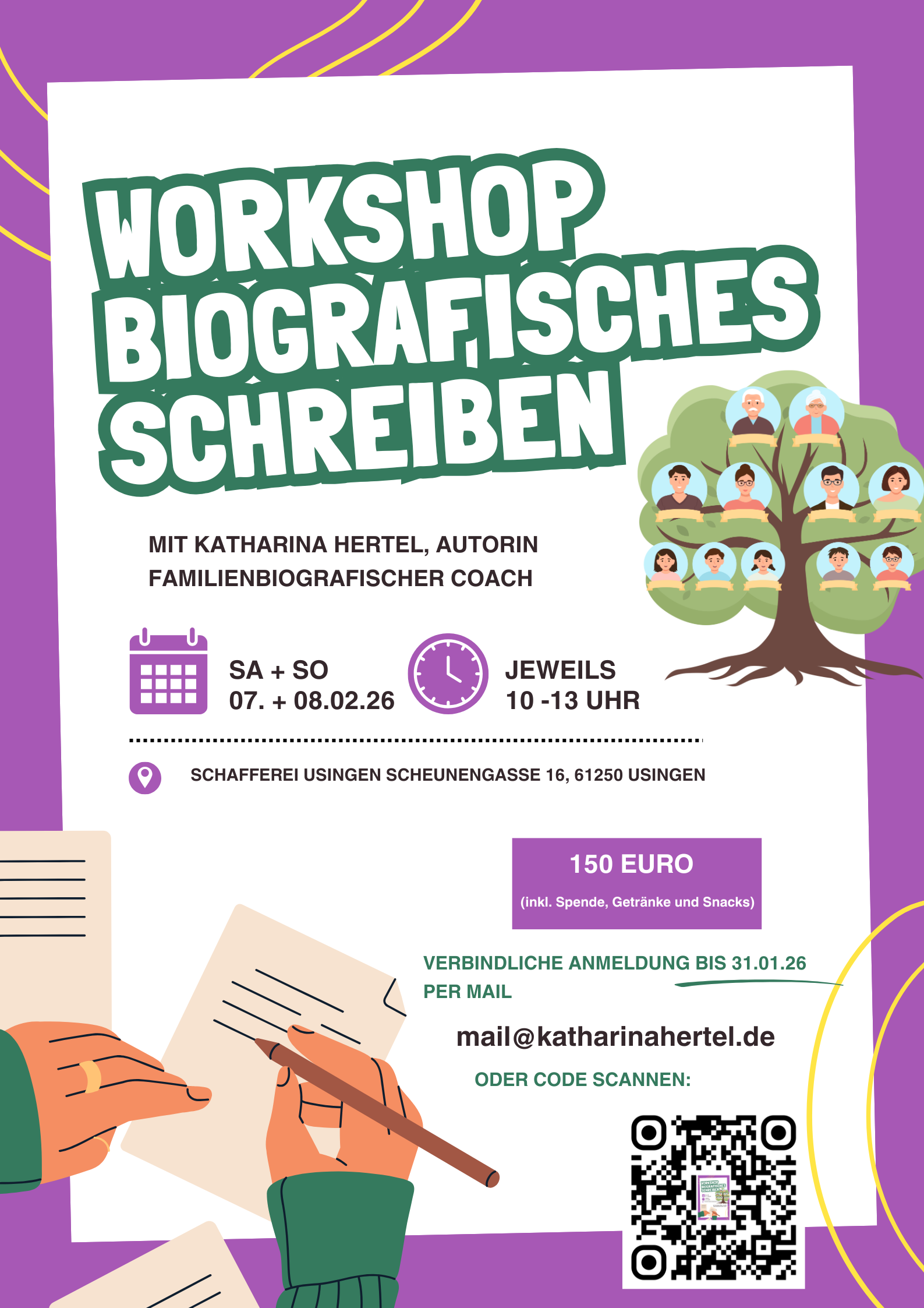 An zwei aufeinanderfolgen Tagen jeweils von 10-13 Uhr blicken wir in deine Familiengeschichte und nutzen sie als Inspiration für deine kreativen Texte.